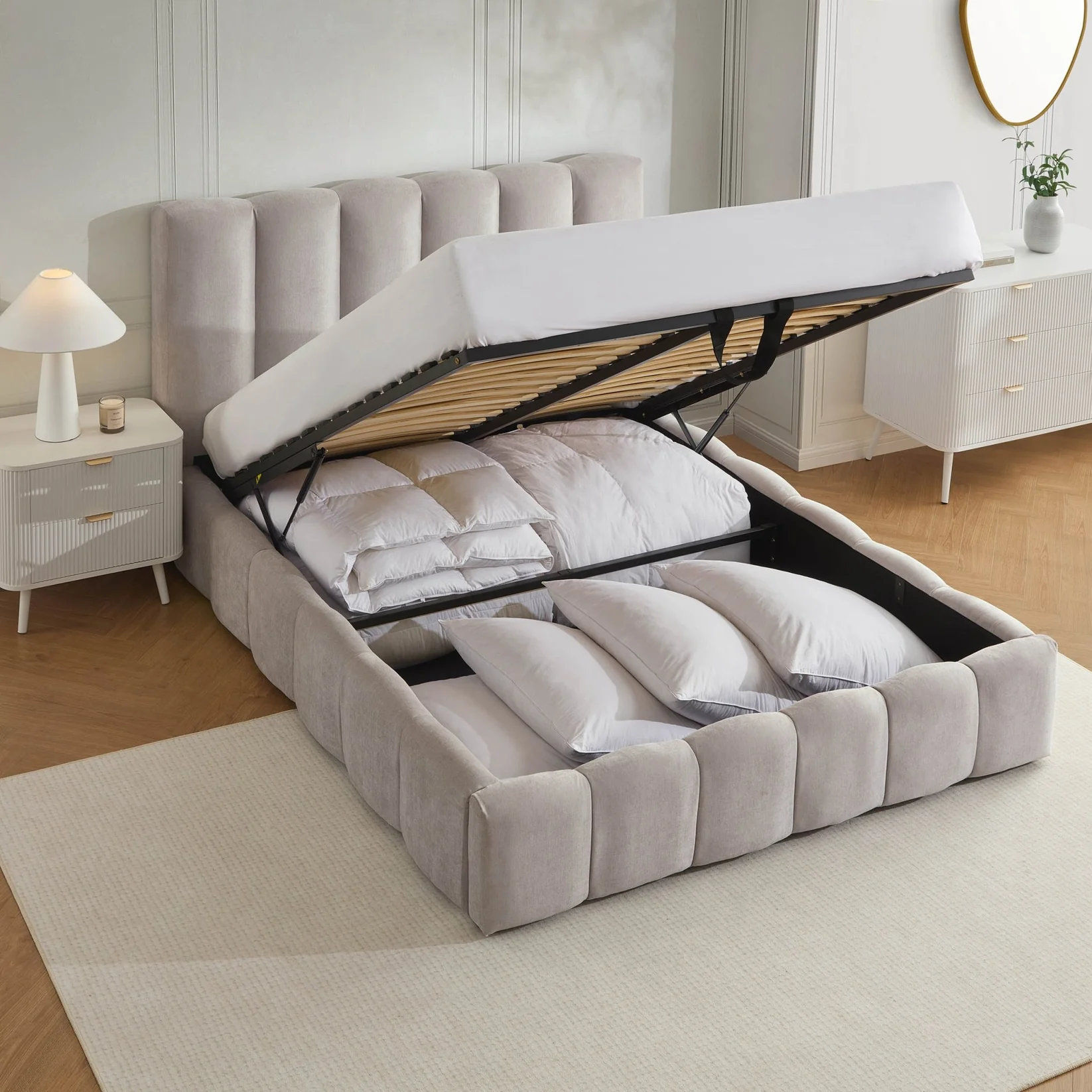 The ottoman base maximises your bedroom storage without compromising on style — perfect for modern living where space matters.