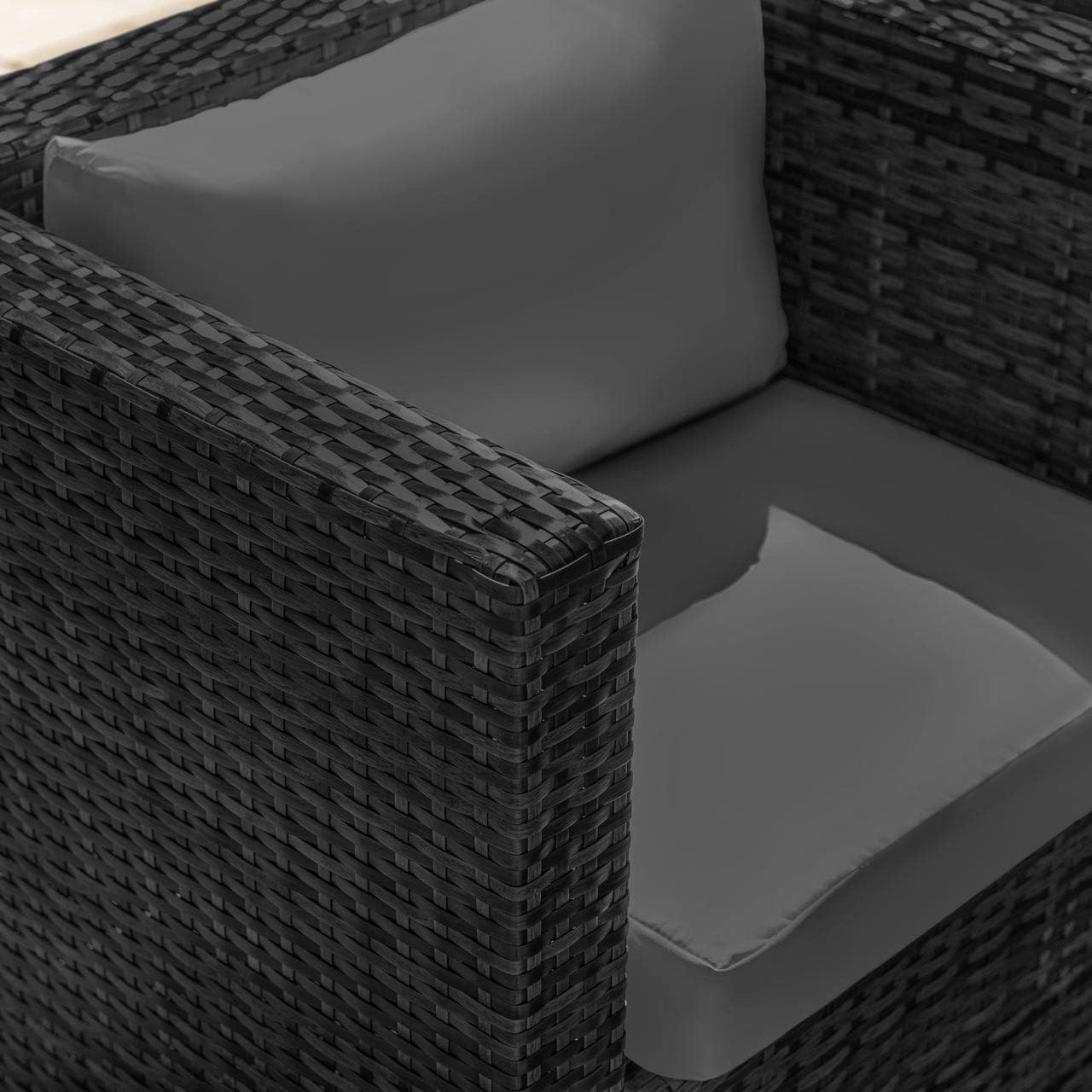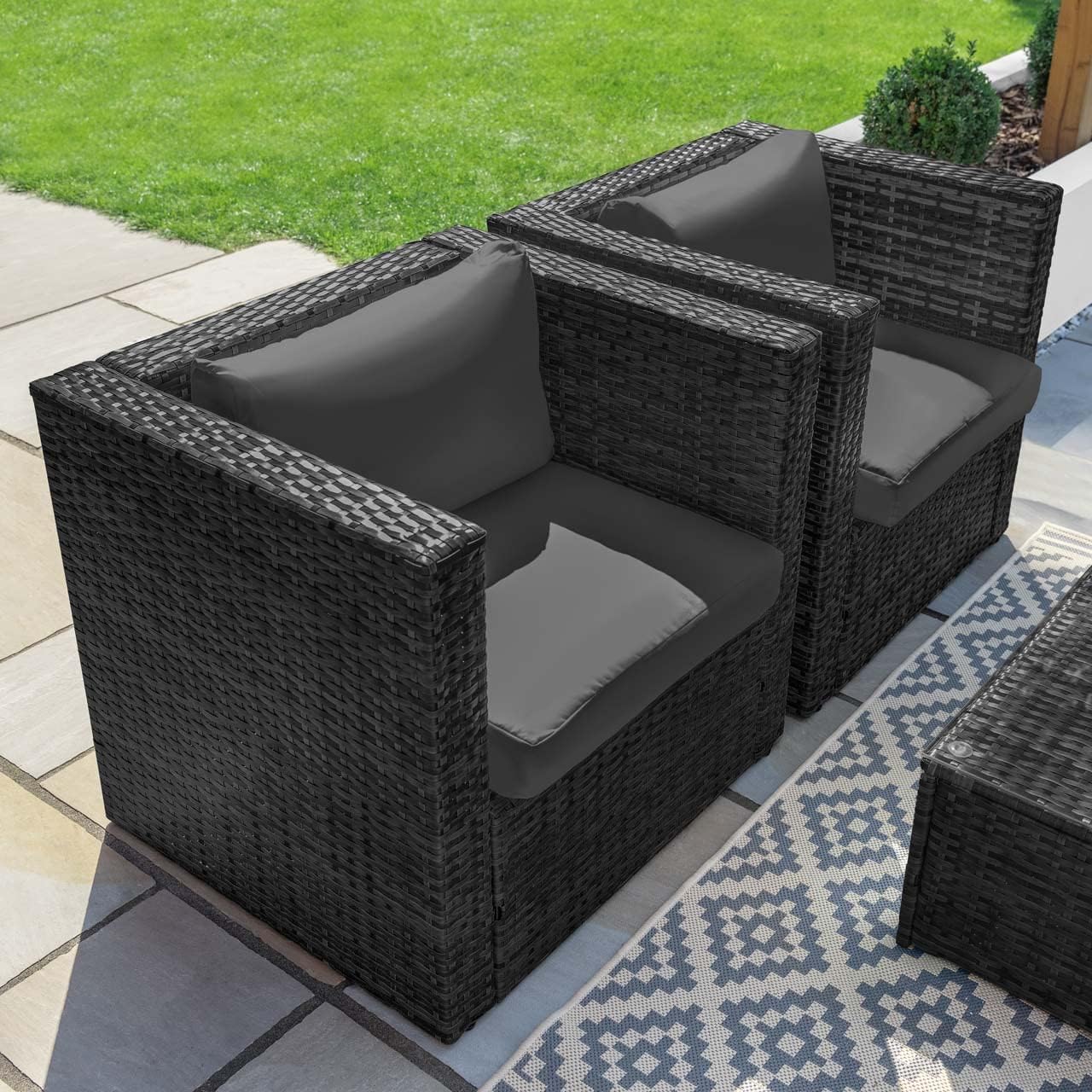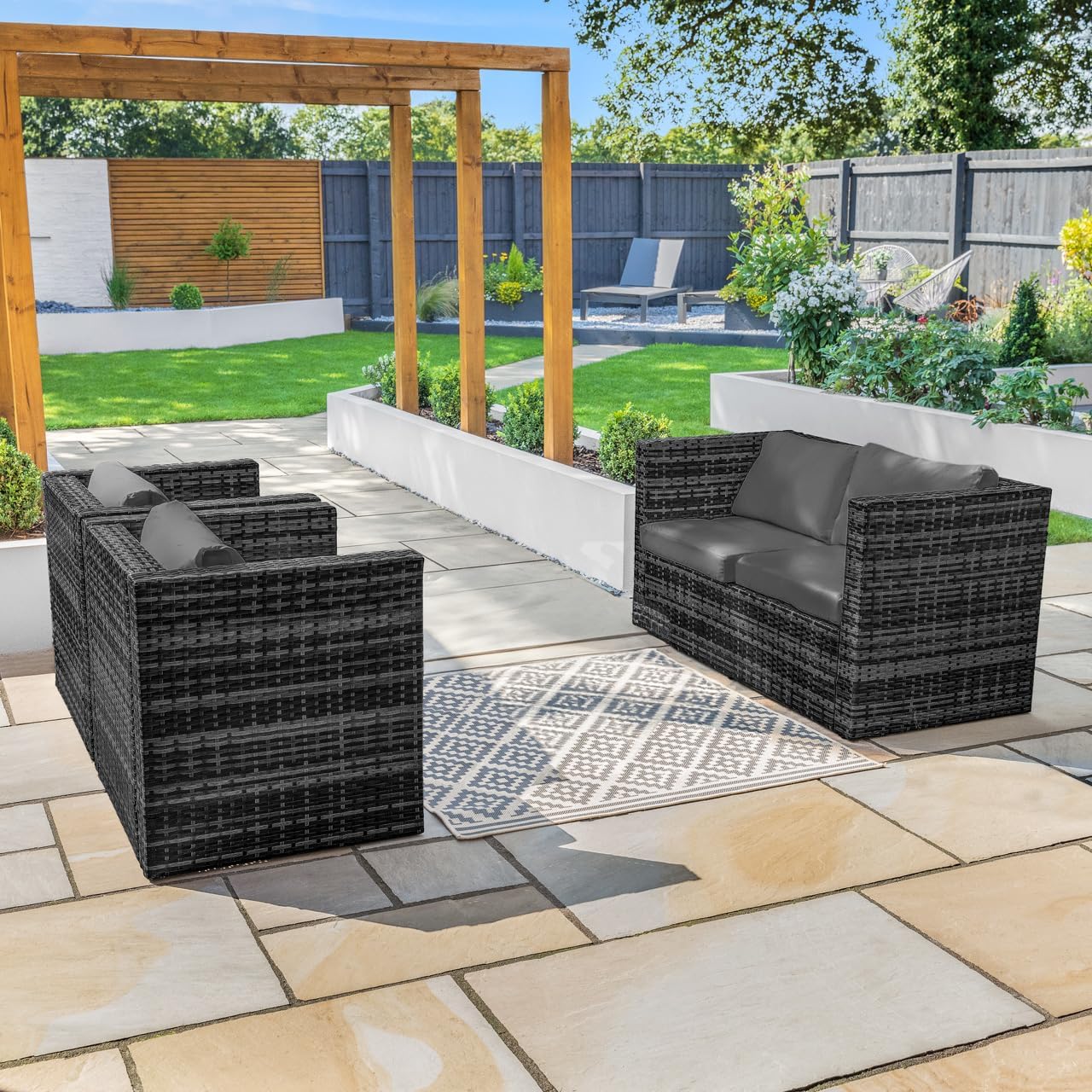 Home Garden Harrier 4 Seater Rattan Furniture Set – Outdoor Patio Sofa with Optional Ottoman, Coffee Table – Grey/Black & Grey